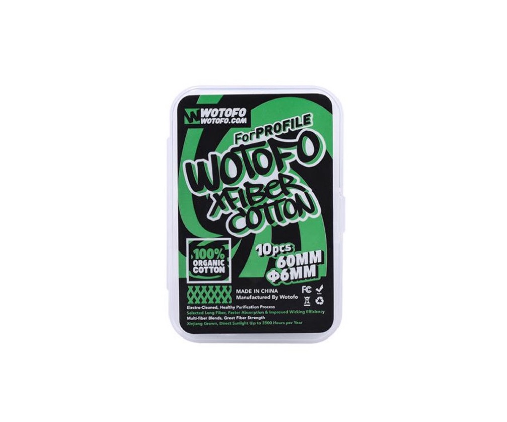 Wotofo Xfiber Cotton for Profile is made of 100% organic cotton, long fibers make the wick percolate smoothly and not easy to separate. The right amount and length of cotton is very convenient to use, you don’t need to do it yourself. It has a sleeve on the cotton end, which makes it easy to pass the cotton through the resistors. It comes with great absorbency and will provide the purest flavor. Get these replacement parts for your Profile RDA.